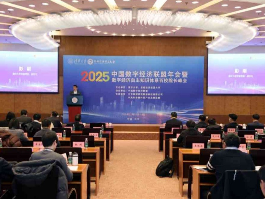 12月13日至14日,由清华大学和首都经济贸易大学联合主办,中国数字经济联盟协办的2025中国数字经济联盟年会暨数字经济自主知识体系百校院长峰会举行。会议现场(首都经济贸易大学供图)13日,年会开幕式、大会报告、院长论坛和中国数字经济联盟发展闭门会在清华大学主楼举行。清华大学党委常委、副校长彭刚,首都经济贸易大学党委副书记、校长吴卫星分别致辞。清华大学社科学院经济所教授、至善书院院长汤珂主持开幕式。彭刚表...