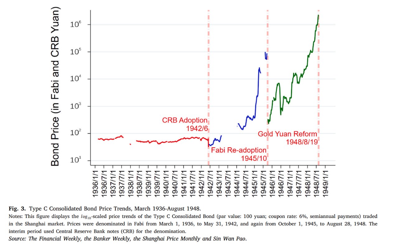 Why do states repay their debts? This paper addresses this question by examining how the Nationalist government partially honored major domestic bonds traded in Shanghai—the Consolidated Bonds—amid hyperinflation in post-World War II China. Three main findings emerge: (1) Bond prices surged exponentially between 1946 and 1948, surpassing traditional valuation benchmarks by tens of thousands of times, as a partial hedge against hyperinflation. (2) Price fluctuations were significantly driven by news indicating that the bonds might be redeemed at multiples of their face values following a prospective currency reform. (3) The Government ultimately responded to public expectations by redeeming the bonds at nominally generous multipliers, which aimed not only to sustain its bond issuance capacity but, more crucially, to preserve a currency system closely tied to its bond creditworthiness at relatively low fiscal cost. These findings suggest that a hybrid of the two principal theories of sovereign debt repayment best explains the experience of China’s Consolidated Bonds.