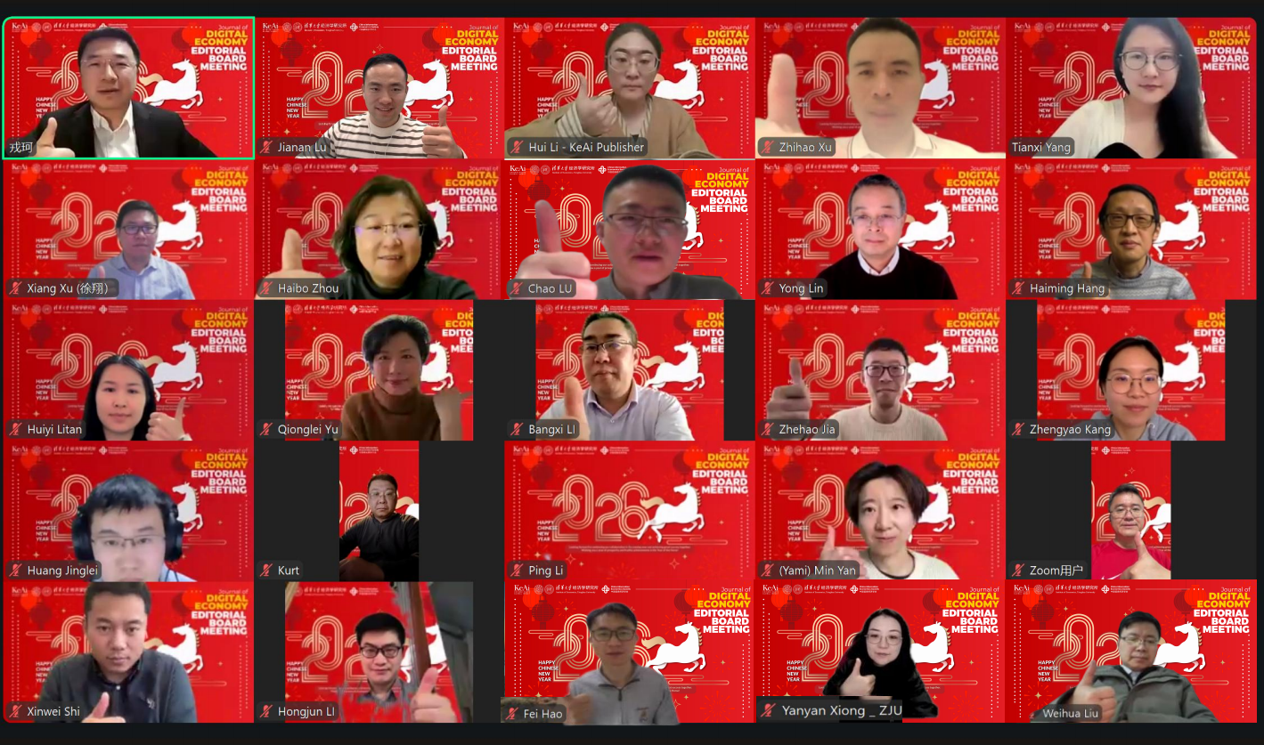 北京时间2026年2月13日,Journal of Digital Economy(JDE)2026年编委会顺利召开。本次会议在线上举行,是JDE编委会改制为“领域制”后的首次年度总结会议,参会人员包括戎珂主编,领域主编,领域副主编,科学编辑和编辑部成员。