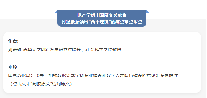学界和业界两支队伍的深度融合需要相应的体制机制作保障。《意见》提出支持具备条件的高校与企业、研究机构等共建数字领域专业特色学院。鼓励数据企业参与职业院校的教育教学,共同开展学生培养和技术研发等工作,包括共建“校中厂”“厂中校”实训基地等。相信这些措施都会进一步推动两支队伍的交流融合。